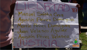 Llamar al Estado mexicano a cumplir con la opinión del Grupo de Trabajo de Detenciones Arbitrarias y poner en libertad inmediata a Manuel Sántiz Cruz, Juan Velasco Aguilar, Augustín Pérez Domínguez, Agustín Pérez Velasco y Martín Pérez Domínguez; a investigar a las autoridades responsables de su criminalización, y a la reparación integral de todos los daños causados.